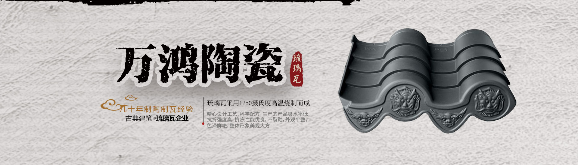 宜興市萬鴻陶瓷有限公司是國內生產古建琉璃瓦企業,也是宜興市琉璃瓦行業龍頭骨干企業。琉璃瓦采用1250攝氏度高溫燒制而成,公司座落經濟發達的宜興市丁山鎮,臨近寧杭高速公路、新長鐵路、錫宜高速和104國道,交通十分便利?! ∪f鴻陶瓷擁有幾十...